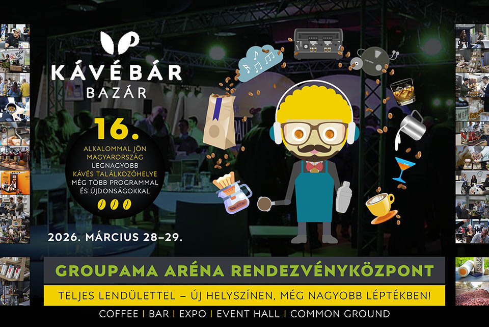 Idén március 28–29-én ismét jön Magyarország legnagyobb kávés rendezvénye, a KávéBár Bazár, ahol a kávé mellett számos izgalmas termék és program is helyet kap. Új helyszínen, a Groupama Aréna csupa üveg rendezvényterében kóstolgathatják a látogatók korlátlan mennyiségben a világ kiemelkedő termőhelyeiről érkező kávékat, melyeket akár meg is vásárolhatnak. Nem csak a kávéról szól a hónap utolsó hétvégéje: izgalmas alkoholmentes koktélokról, matchákról is, mindezt fergeteg hangulatban.