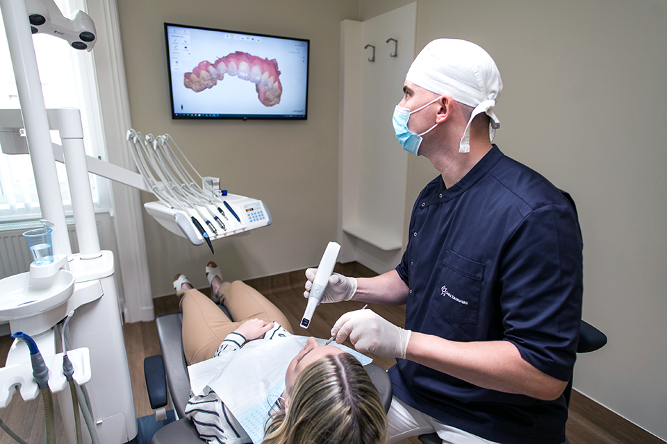 – A jelenlegi, megváltozott körülmények között még fontosabb, hogy pontos diagnózissal tudjuk elkezdeni a fogászati kezeléseket, így biztosítva azt, hogy azokat a lehető legrövidebb idő alatt, a legkevesebb időponttal és biztos végeredménnyel tudjuk elvégezni. Ennek egyik záloga a digitális, 3D-ben elemezhető CT felvétel készítése, amelyet nem csupán implantátumok tervezésekor ajánlok, de akár már egy gyökérkezelésnél is, hiszen így már előzetesen felmérhető a gyökércsatornák száma és elhelyezkedése, lerövidítve ezzel a kezelés idejét. Igyekeztünk megtalálni a módját, hogy a fogtechnikai labor felé is minél kisebb kockázatot jelentsen a vírusjárvány. A fogtechnikára a páciensek fogazatáról vett lenyomatokat küldünk, melyeket alaposan fertőtlenítünk ugyan, ennek ellenére kijelenthetjük, hogy ez továbbra is a keresztfertőzésnek egy potenciális útja. Hogy erre is legyen megoldás, beruháztunk egy digitális lenyomatvételre alkalmas orálszkennerbe, amely a legtöbb, hagyományos lenyomatvételt feleslegessé teszi, így egyszerűen, számítógépen tudjuk elküldeni a lenyomatot a fogtechnikai labornak. Emellett természetesen a páciensünknek is sokkal kényelmesebb és gyorsabb a lenyomatvételi művelet. Főleg azok örülhetnek ennek a megoldásnak, akik hányingerrel küszködnek a hagyományos fogászati lenyomatvétel során.