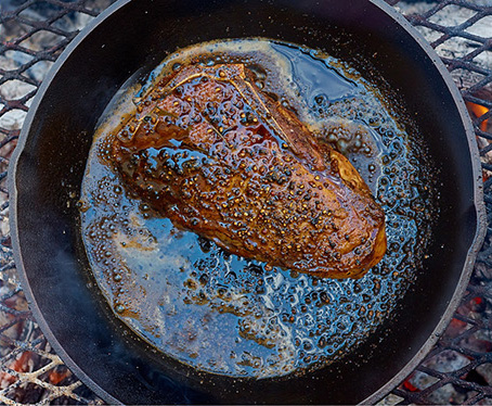 – A serpenyő mindenhez jó, a hamburgerhez ugyanúgy, mint mignon filéhez vagy bármilyen más húshoz – ad tanácsot a texasi séf. – Lényegében az is mindegy, milyen fajta steaket sütünk, a serpenyő ugyanis hirtelen süti meg a hús kérgét, így belül extra lédús marad a hús. Másfelől, ha bármilyen más technológiát alkalmazunk, csak megégetjük itt-ott a húst, a zamatos nedvek pedig a tűz martalékává lesznek – érvel a serpenyő használata mellett Tesar.