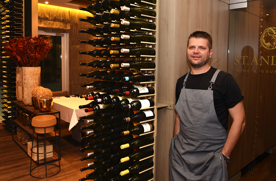 – Amióta a St. Andreában dolgozom, nagy változáson mentem keresztül, vagyis tudat alatt talán egy picit „hozzáfőzök” az élénk, szép savú egri borokhoz. Egyébként nem főzök borhoz, legfeljebb egy-egy esemény alkalmával, amikor kapunk egy borsort, és ahhoz találjuk ki a fogásokat. A feladat nagyon inspiráló, szeretünk benne elmélyedni, de a mindennapokra nem ez a jellemző. Egy egyensúlyban lévő ételhez egyébként is könnyű borpárosítást találni.