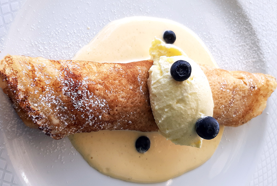 Vonyarcvashegy még Zala megyéhez tartozik, nem hagyhatjuk ki a desszertek közt lapuló zalai specialitást a zalai totyogós palacsintát. A desszert lényegében egy palacsintába tekert vargabéles, amely alatt angolkrém terül el, tetején lágy vaníliahab pihen. Egy palacsinta ebből a helyi unikumból, főleg étkezés végén éppen elég. A minőségről pedig a vaníliaszószból kivillanó kis fekete pöttyök tesznek bizonyságot – már aki érti!